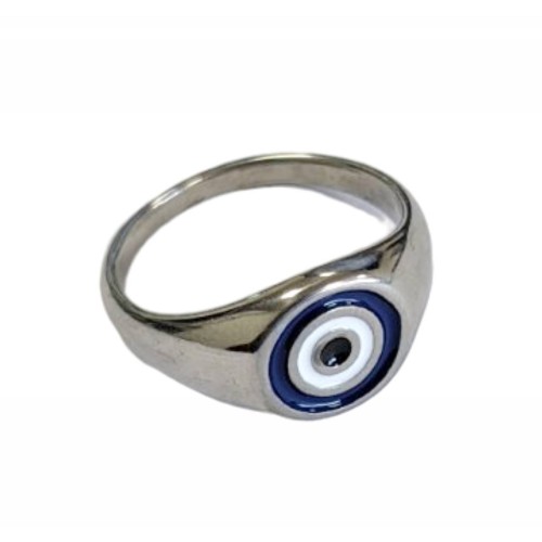 Kostibas 2513-611B, Δαχτυλίδι, Ατσάλι, Με μπλε μάτι, Ασημί