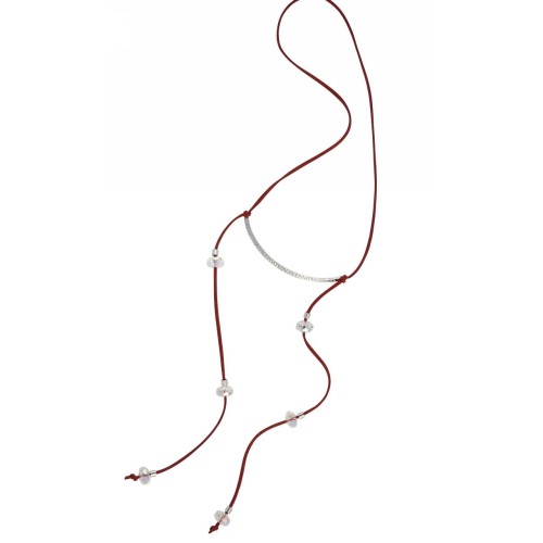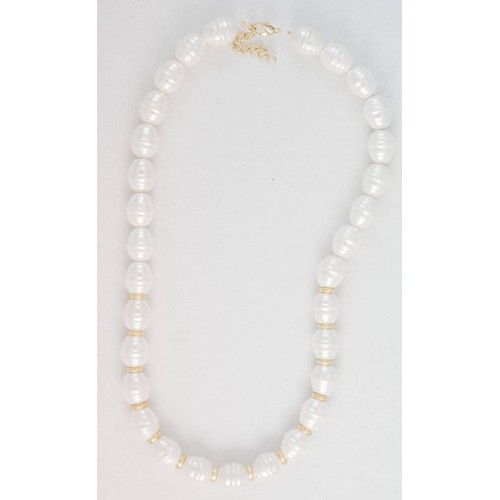 Kostibas 1039-555L, Κολιέ, Σχοινί, Χάντρες, ΤΕ, Λευκό