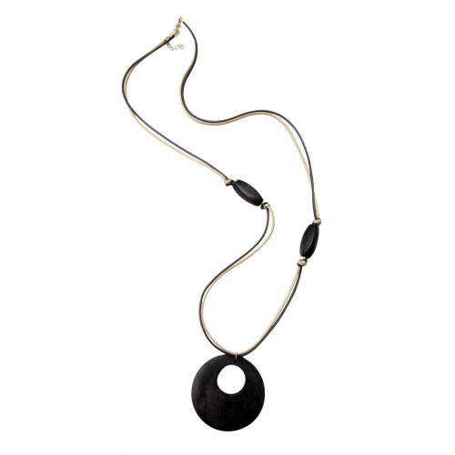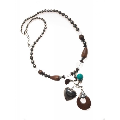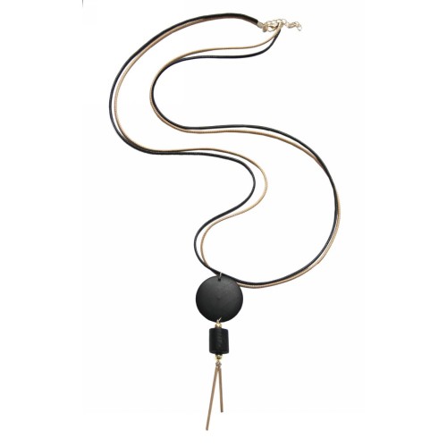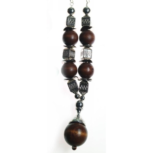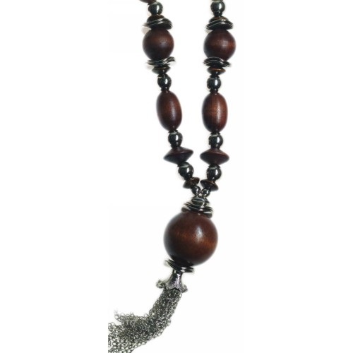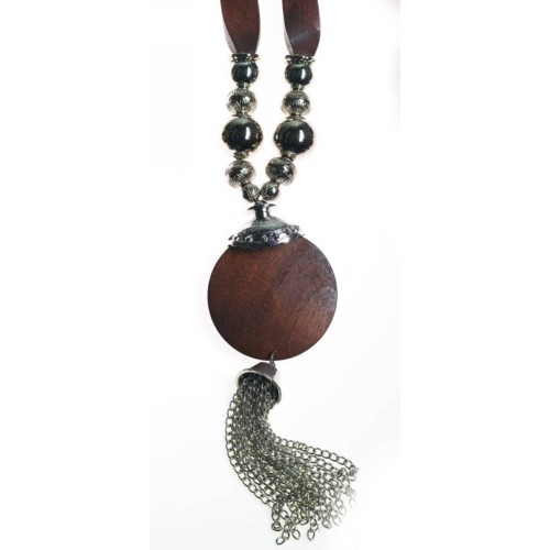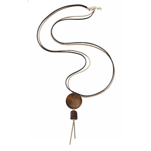 Κολιέ Ξύλινα Ξύλο Στρόγγυλο με κύλινδρο+χρυσαφί μπρούτζινο εκκρεμές..