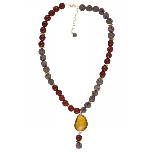 Κολιέ Με πέτρα Ημιπολύτιμο Πολυγωνική Με πολυγωνική πέτρα maroon+τοπάζι με ροδέλες..