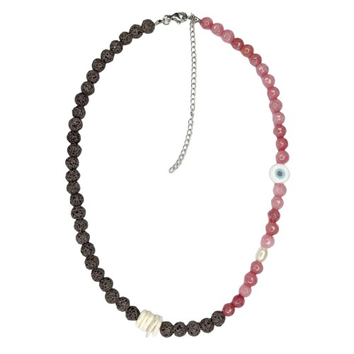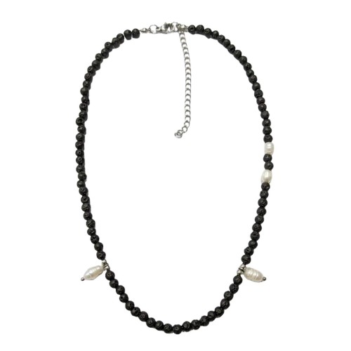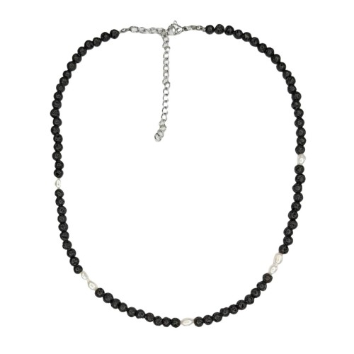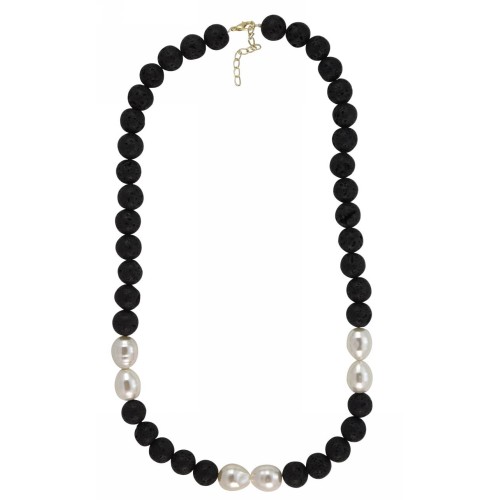 Κολιέ Με πέτρα Με μαργαριτάρια 6-7mm+λάβα 4mm    ..