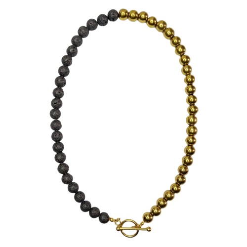 Κολιέ ,με ιδιαίτερο κούμπωμα πέτρα λάβα #8 και αιματίτη #8..