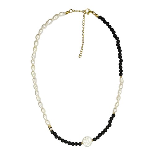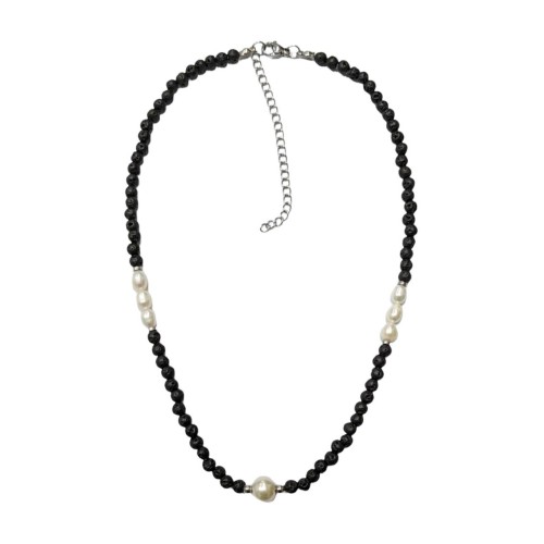 Κολιέ Με πέτρα 4#,μαργαριτάρι 4-5mm,αιματίτης 3#+ατσάλινο κούμπωμα    ..