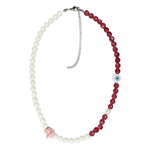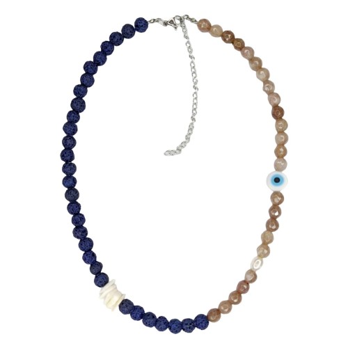 Κολιέ Με πέτρα 6mm,πολυγωνικές πέτρες 6mm,χυλοπίτες+μάτι γυάλινο 10mm    ..