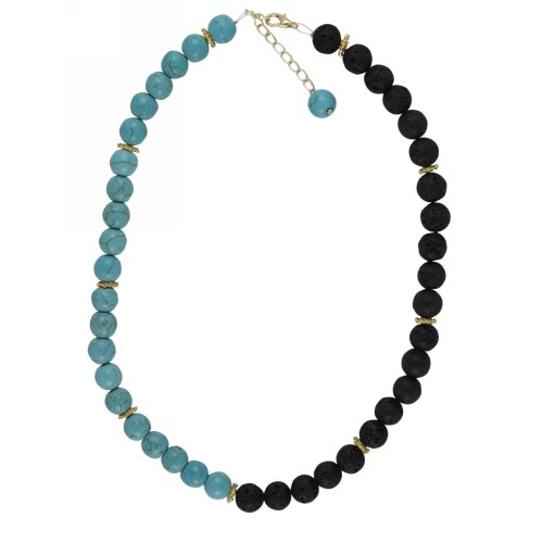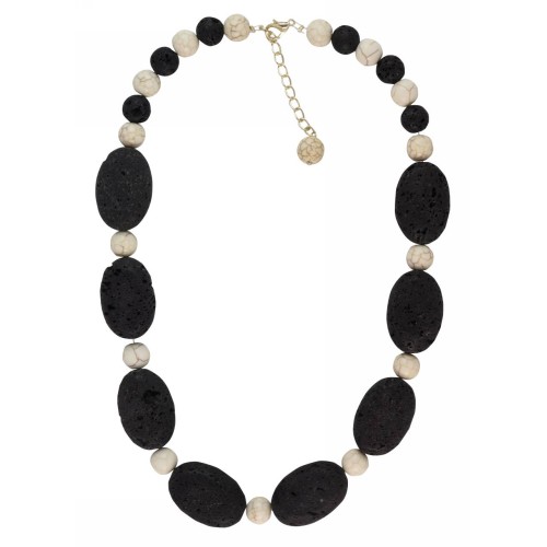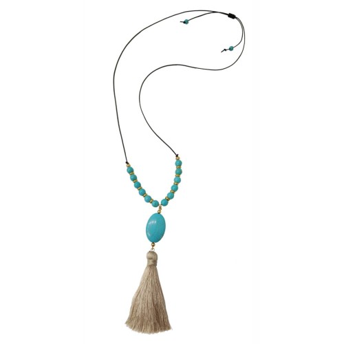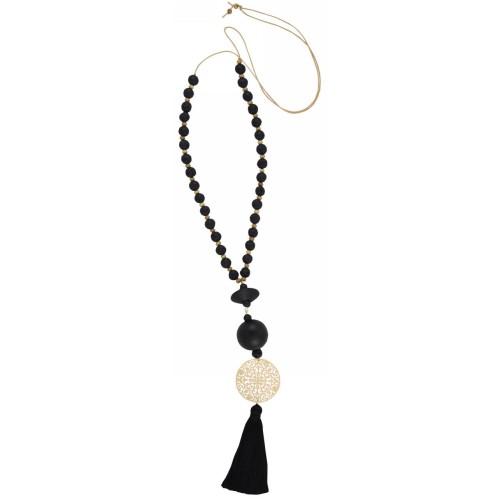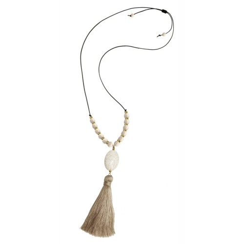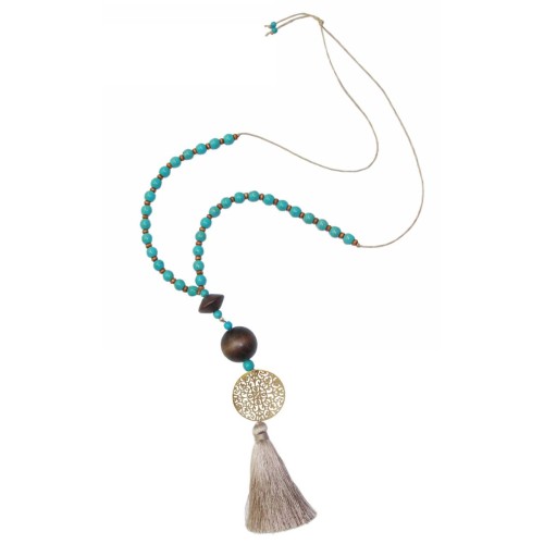 Κολιέ Με πέτρα με ξύλινες χάντρες,μεταλλικό μοτίφ+φούντα..