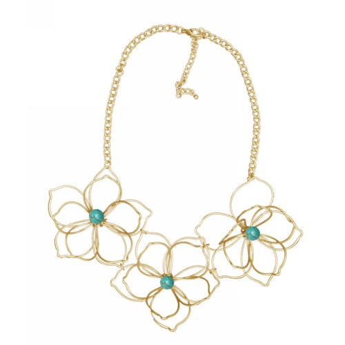 Κολιέ Με πέτρα Λουλούδι iron / powder stone / iron chain kc gold..