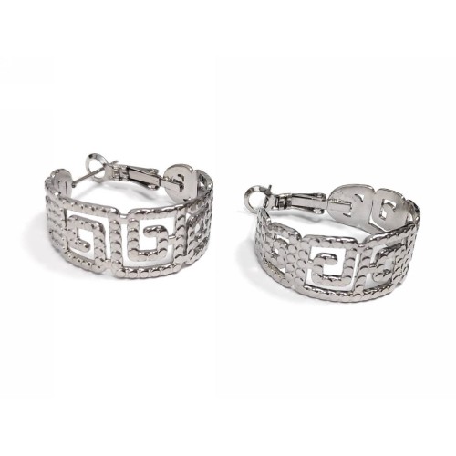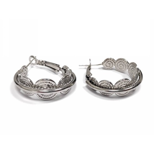 Σκουλαρίκια Ατσάλι 316L, κρίκος με μαίανδρο σε χρώμα Ασημί, Διάμετρος 2,5cm..