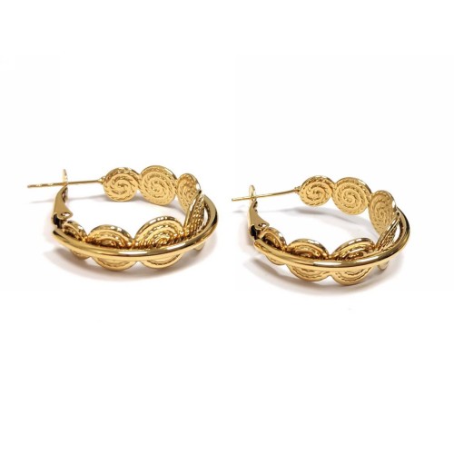 Σκουλαρίκια Ατσάλι 316L, κρίκος με σπείρα σε χρώμα Χρυσαφί, Διάμετρος 2,5cm..