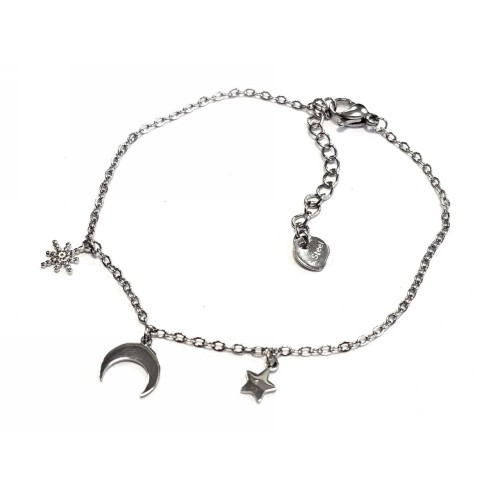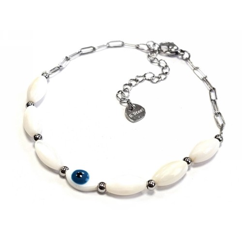 Βραχιόλι Ατσάλι 316L, αλυσίδα με μάτι και μαργαριτάρι σε χρώμα Ασημί..
