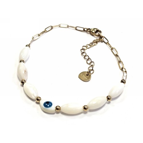 Βραχιόλι Ατσάλι 316L, αλυσίδα με μάτι και μαργαριτάρι σε χρώμα Χρυσαφί..