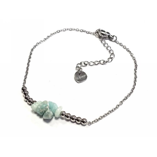 Βραχιόλι Πέτρα ατσάλι 316L, αλυσίδα με τυρκουάζ σε χρώμα Ασημί..