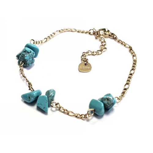Βραχιόλι Πέτρα ατσάλι 316L, αλυσίδα με τυρκουάζ σε χρώμα Χρυσαφί..