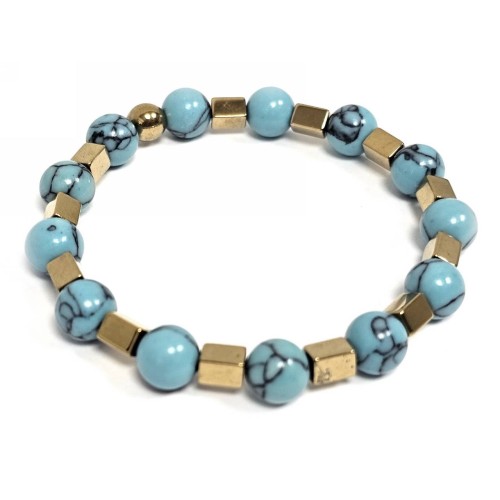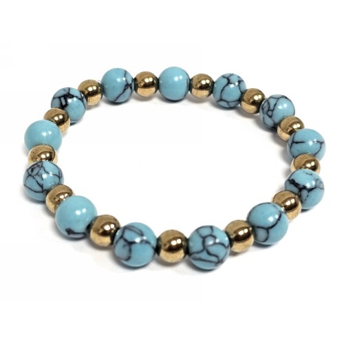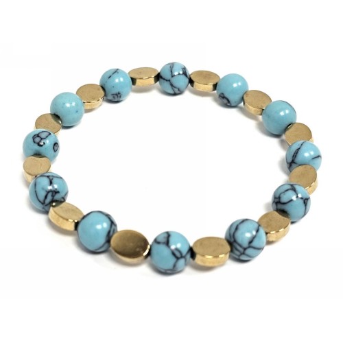 Βραχιόλι Πέτρα λάστιχο, 8# τυρκουάζ, και στοιχεία από αιματίτη σε χρώμα Χρυσαφί..