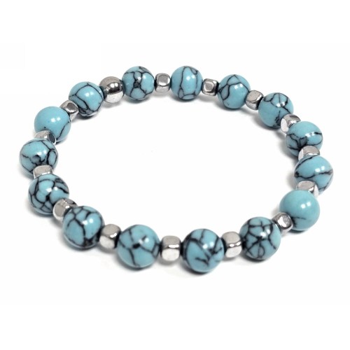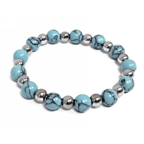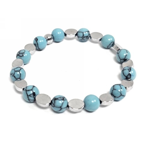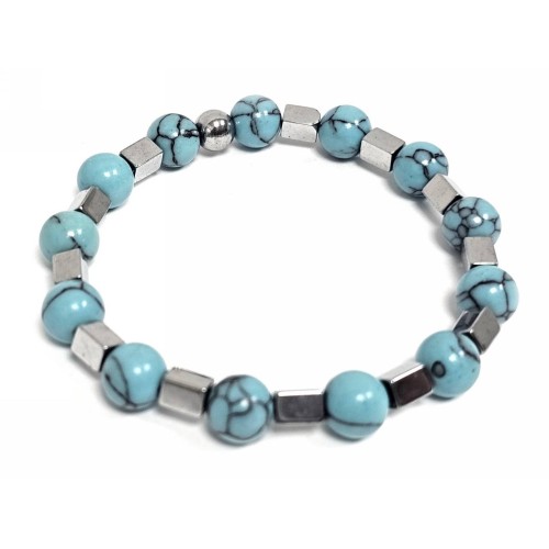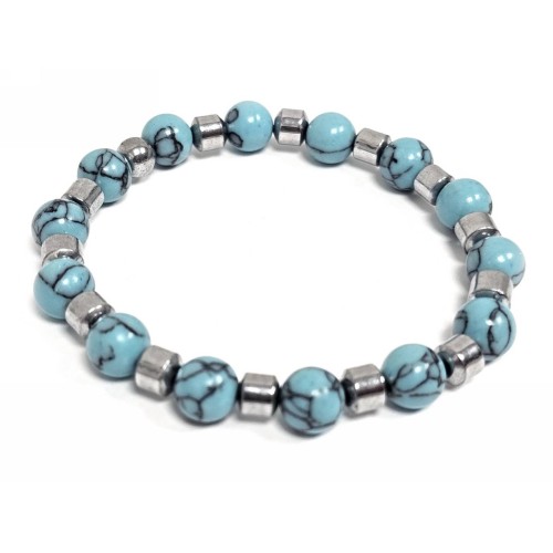Βραχιόλι Πέτρα λάστιχο, 8# τυρκουάζ, και στοιχεία από αιματίτη σε χρώμα Ασημί..