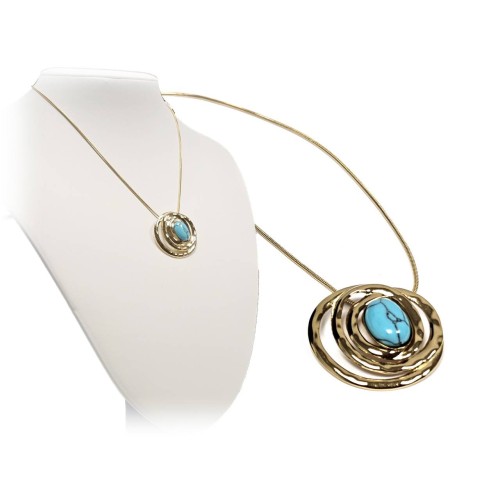 Κολιέ Πέτρα ατσάλι 316L, αλυσίδα με τυρκουάζ σε χρώμα Χρυσαφί..