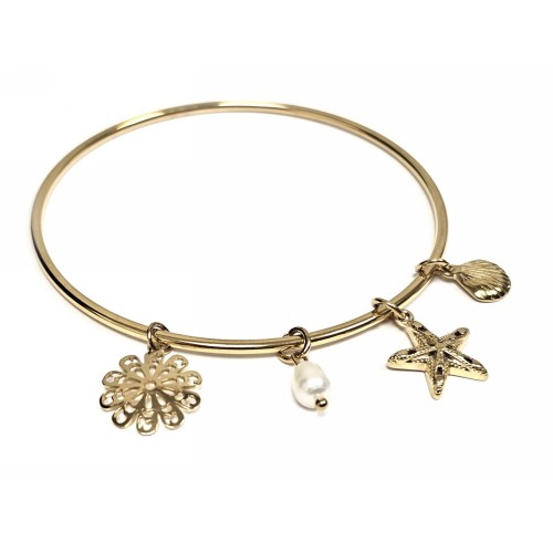 Βραχιόλι Ατσάλι 316L, με ατσάλινα στοιχεία και μαργαριτάρι σε χρώμα Χρυσαφί..