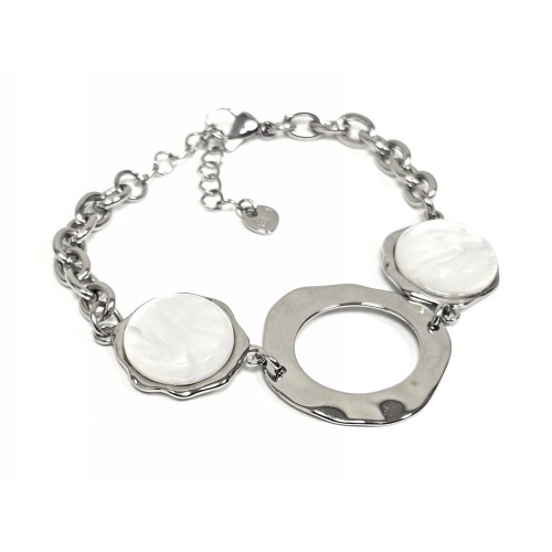 Βραχιόλι Ατσάλι 316L, με ατσάλινα στοιχεία και μαργαριτάρι σε χρώμα Ασημί..