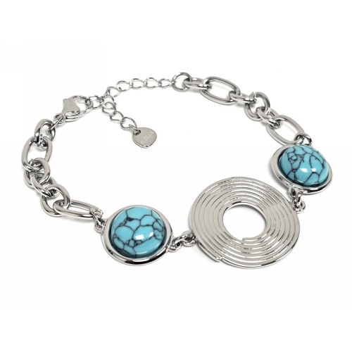 Βραχιόλι Πέτρα ατσάλι 316L, αλυσίδα με τυρκουάζ σε χρώμα Ασημί..
