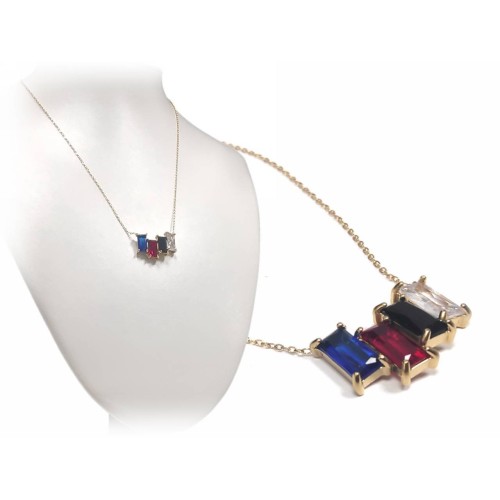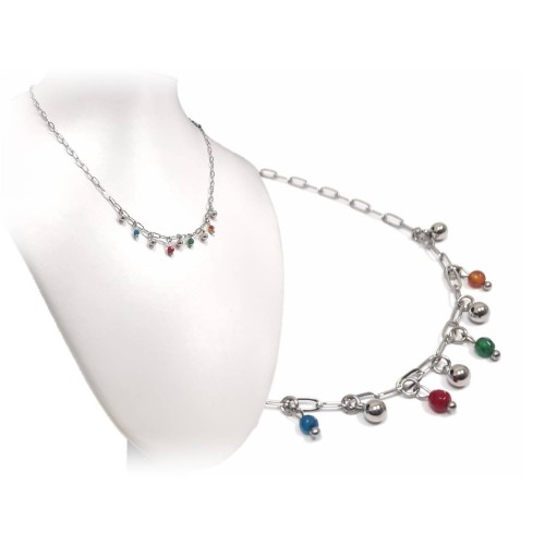Κολιέ Ατσάλι 316L, με πολύχρωμα κρυσταλλάκια σε χρώμα Χρυσαφί, Μήκος 40cm..