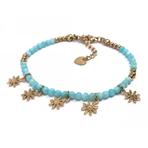 Βραχιόλι Πέτρα 316L, αλυσίδα με τυρκουάζ κρυσταλλάκια σε χρώμα Χρυσαφί..