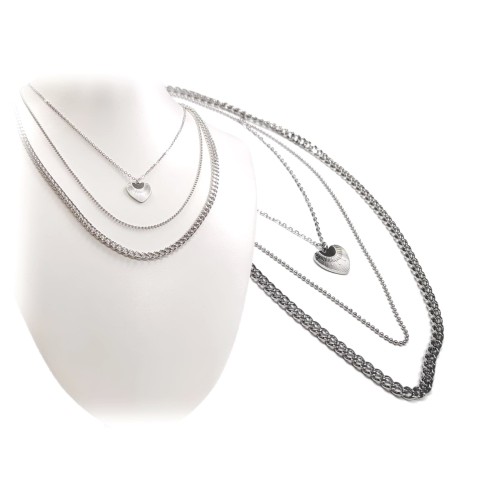 Κολιέ Ατσάλι 316L, τριπλή αλυσίδα με καρδιά σε χρώμα Ασημί, Μήκος 40cm..