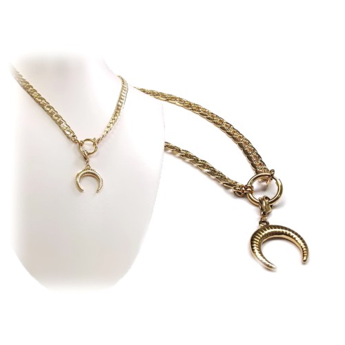 Κολιέ Ατσάλι 316L, αλυσίδα με φεγγάρι σε χρώμα Χρυσαφί, Μήκος 40cm..