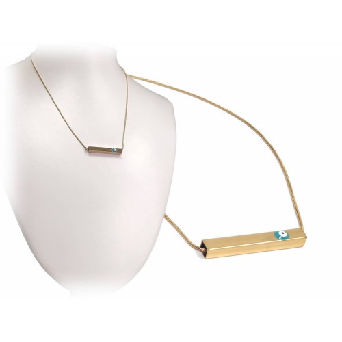 Κολιέ Ατσάλι 316L, αλυσίδα με τυρκουάζ και μάτι σε χρώμα Χρυσαφί, Μήκος 40cm..