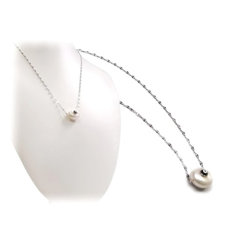 Κολιέ Ατσάλι 316L, αλυσίδα με μαργαριτάρι και μάτι σε χρώμα Ασημί, Μήκος 40cm..