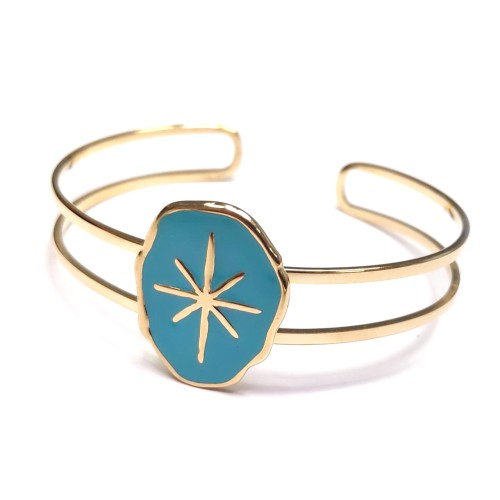 Σκουλαρίκια Ατσάλι 316L, κρίκος με τυρκουάζ σμάλτο σε χρώμα Χρυσαφί, Μήκος 2cm, Πλάτος 1,5cm..