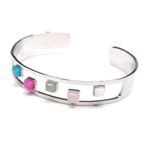 Βραχιόλι Πέτρα 316L με πολύχρωμα κρυσταλλάκια σε χρώμα Ασημί..