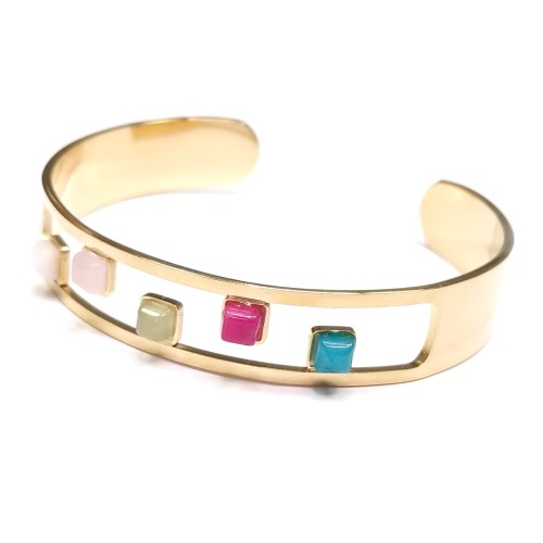 Βραχιόλι Πέτρα 316L με πολύχρωμα κρυσταλλάκια σε χρώμα Χρυσαφί..