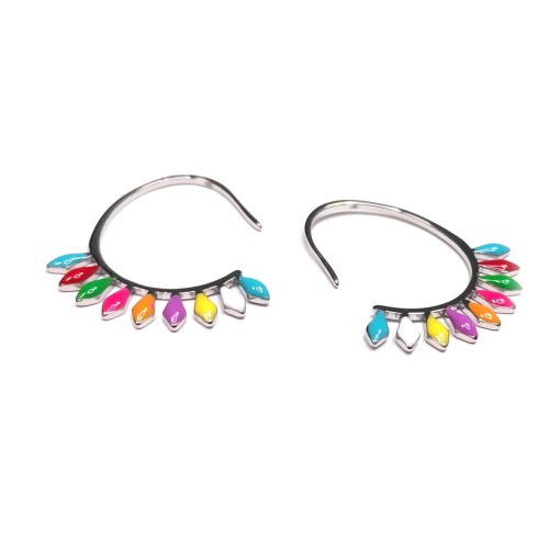 Σκουλαρίκια Ατσάλι 316L, κρίκος με πολύχρωμα σμάλτο σε χρώμα Ασημί, Διάμετρος 1,5cm..