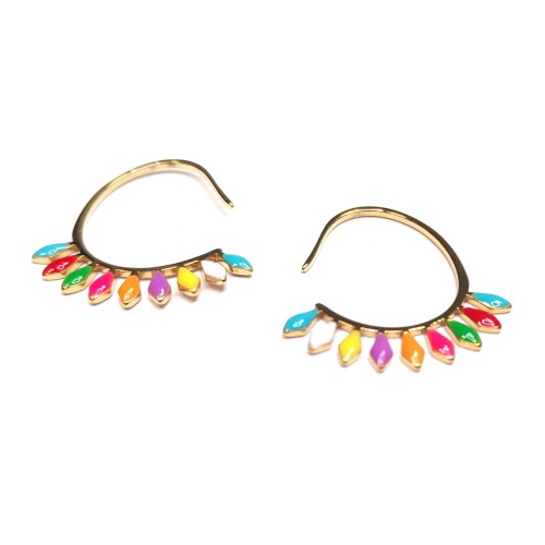 Σκουλαρίκια Ατσάλι 316L, κρίκος με πολύχρωμες πέτρες με σμάλτο σε χρώμα Χρυσαφί, Διάμετρος 2cm..
