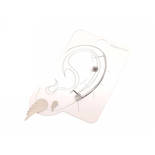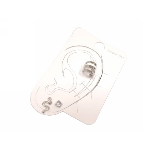 Σκουλαρίκια Ατσάλι 316L, καρτέλα (cuff, στρας, φίδι) σε χρώμα Ασημί..