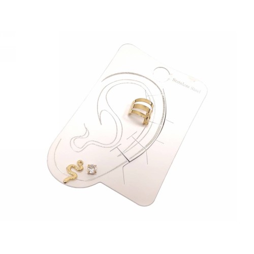 Σκουλαρίκια Ατσάλι 316L, καρτέλα (cuff, στρας, φίδι) σε χρώμα Χρυσαφί..