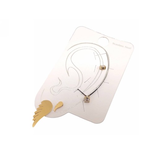 Σκουλαρίκια Ατσάλι 316L, καρτέλα (2 φτερά και 2 στρας) σε χρώμα Χρυσαφί..