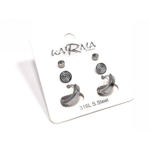 Σκουλαρίκια Ατσάλι 316L, καρτέλα (κρικάκια, στρας, σπείρες) σε χρώμα Ασημί..