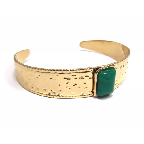 Βραχιόλι Πέτρα 316L, σταθερό με πράσινη πέτρα σε χρώμα Χρυσαφί..