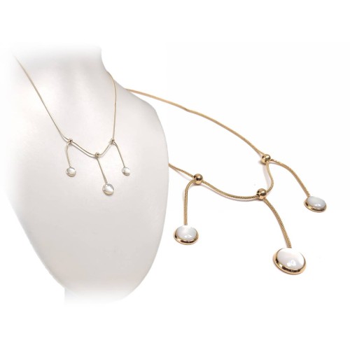 Κολιέ Πέτρα 316L, διπλή αλυσίδα πολύχρωμη με σμάλτο σε χρώμα Χρυσαφί..
