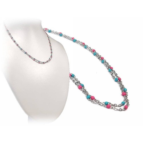 Κολιέ Πέτρα 316L, διπλή αλυσίδα πολύχρωμη με σμάλτο σε χρώμα Ασημί..