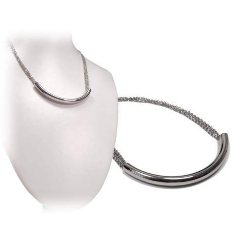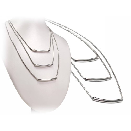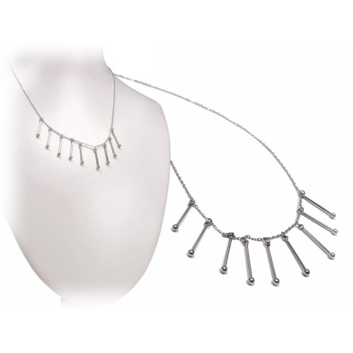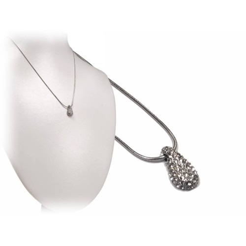 Κολιέ Ατσάλι 316L, αλυσίδα με στρας και κρυσταλλάκι σε χρώμα Ασημί..