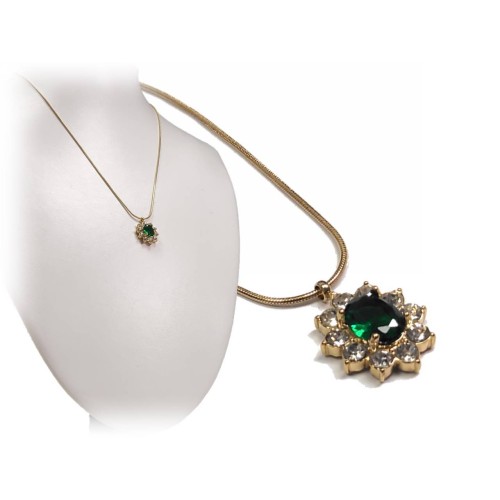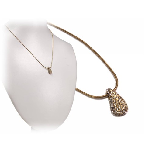 Κολιέ Ατσάλι 316L, αλυσίδα με στρας και κρυσταλλάκι σε χρώμα Χρυσαφί..
