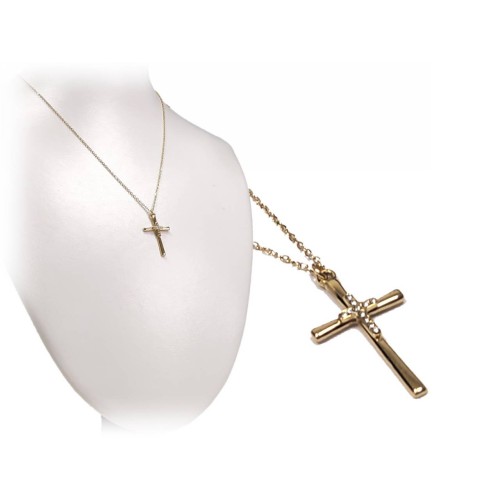 Κολιέ Ατσάλι 316L, αλυσίδα σταυρός με στρας σε χρώμα Χρυσαφί..