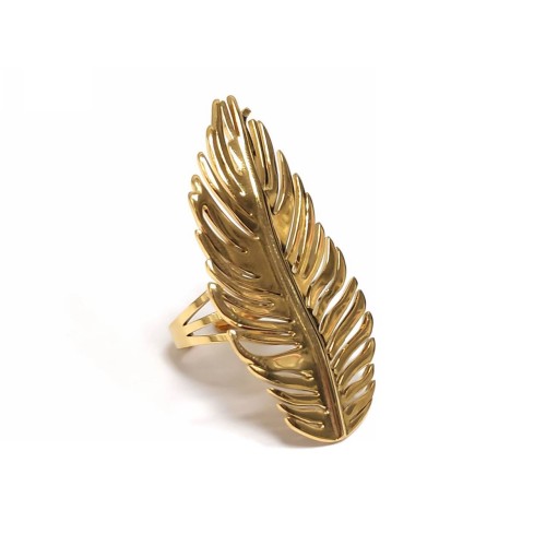Δαχτυλίδι Ατσάλι 316L, με φύλλο σε χρώμα Χρυσαφί..