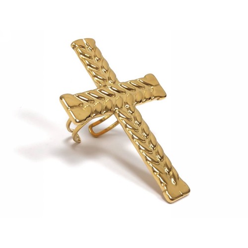 Δαχτυλίδι Ατσάλι 316L, σταυρός σε χρώμα Χρυσαφί..