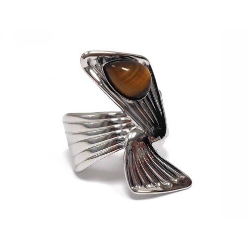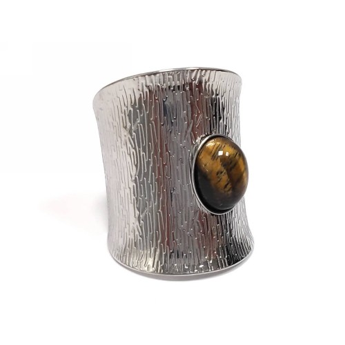 Δαχτυλίδι Πέτρα 316L, με μάτι τίγρης σε χρώμα Ασημί..