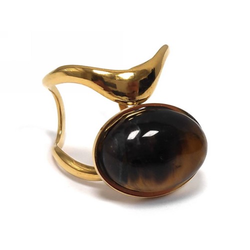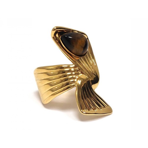 Δαχτυλίδι Πέτρα 316L, με μάτι τίγρης σε χρώμα Χρυσαφί..