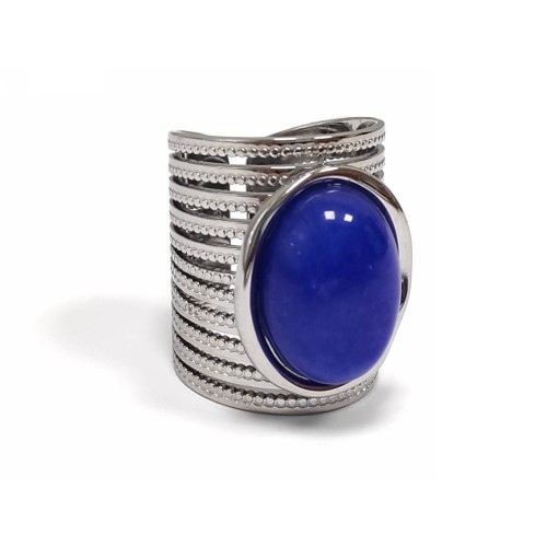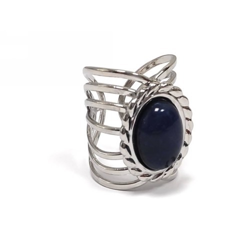 Δαχτυλίδι Πέτρα 316L, με Lapis σε χρώμα Ασημί..