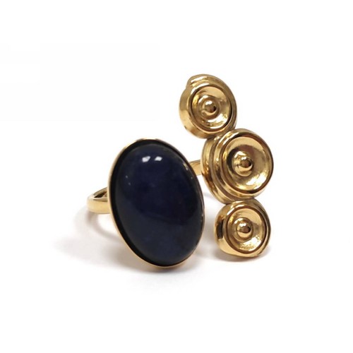 Δαχτυλίδι Πέτρα 316L, με Lapis σε χρώμα Χρυσαφί..