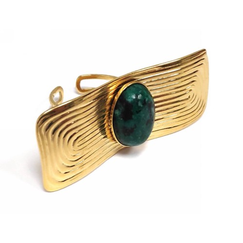 Δαχτυλίδι Πέτρα 316L, με μαλαχίτη σε χρώμα Χρυσαφί..